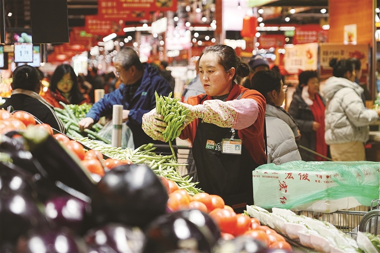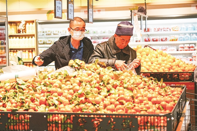 “超市里的菜特别新鲜,种类也全,从蔬菜、水果到肉类、粮油,一站式就能买齐,价格也很稳定。”正在选购年货的市民张芮推着满满一车年货,笑着对记者说,“物资这么充足,过年的幸福感都提升了。”