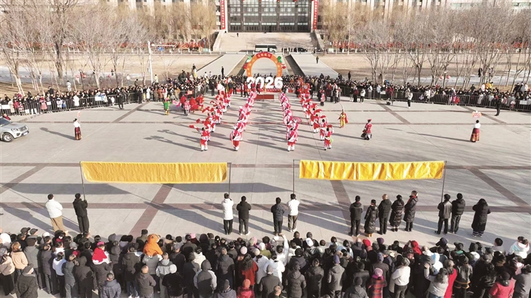2月17日,在市政府广场,2026年春节社火展示展演活动精彩上演。