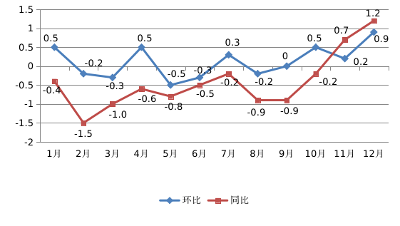 (一)从环比看,月度间环比价格指数震荡运行,变动幅度在-0.5%--0.9%之间,波动跨度1.4个百分点。
