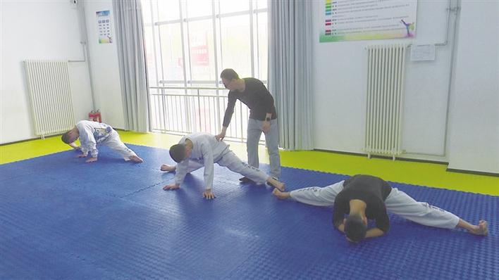 “跆拳道是一项冲击力强,考验体能和反应速度的运动,还是一项解压放松、强身健体的运动项目。”跆拳道教练刘文成介绍,现在有很多家长和孩子选择跆拳道作为青少年健身的项目,放学或者周末、假期,街上时常会看到穿着跆拳道服的少年,跆拳道运动刮起了一阵青春“旋风”。图为教练正在指导学员拉伸。