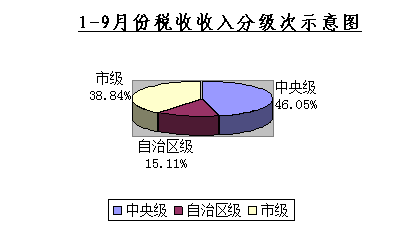 1、税收收入分级次执行情况(示意图1)。税收总收入完成167,967万元。其中:中央级收入77,350万元,占总数的46.05%;自治区级收入25,387万元,占总数的15.11%;市级收入65,230万元,占总数的38.84%。