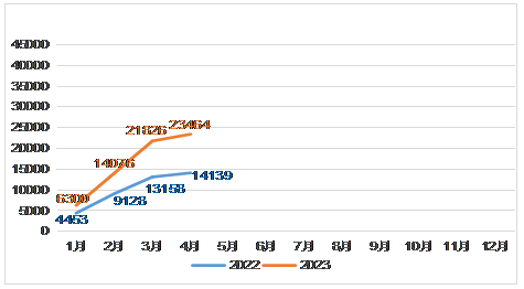 (一)营销情况分析。4月末,6家市属国有企业实现营业总收入23,464万元,同比增长66%。主要原因:一是市应理集团拓展市政工程、新能源材料供应等业务范围,累计实现营业总收入16,879万元,同比增长33.5%,占市属企业营业总收入的71.94%;二是市供销集团苹果销售量增加及供应链公司销售业务增加等,累计实现营业总收入1,136万元,同比增长24.4%;三是市旅游集团加大营销力度,大漠星河、南北长滩、驼铃声声客栈等景区客流量增加,累计实现营业收入198万元,同比增长312.5%;四是市高新集团新增园区企业供应蒸汽业务,累计实现营业总收入增加3,927万元,同比增长14544.4%;五是林草集团收到暂估绿化养护费挂账收入,累计实现营业收入907万元,同比增长382.4%。