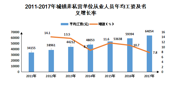 2017年中卫市城镇非私营单位就业人员年平均工资63568元