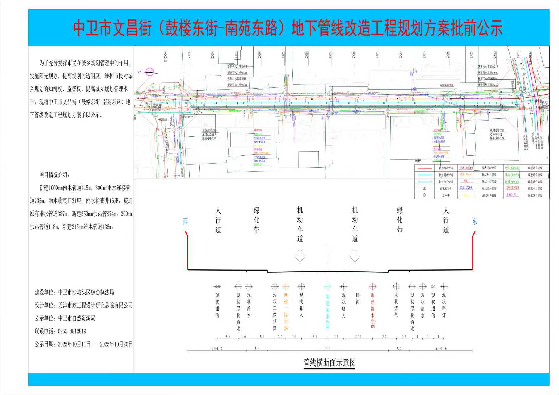 中卫市文昌街(鼓楼东街-南苑东路)地下管线改造工程规划方案批前公示