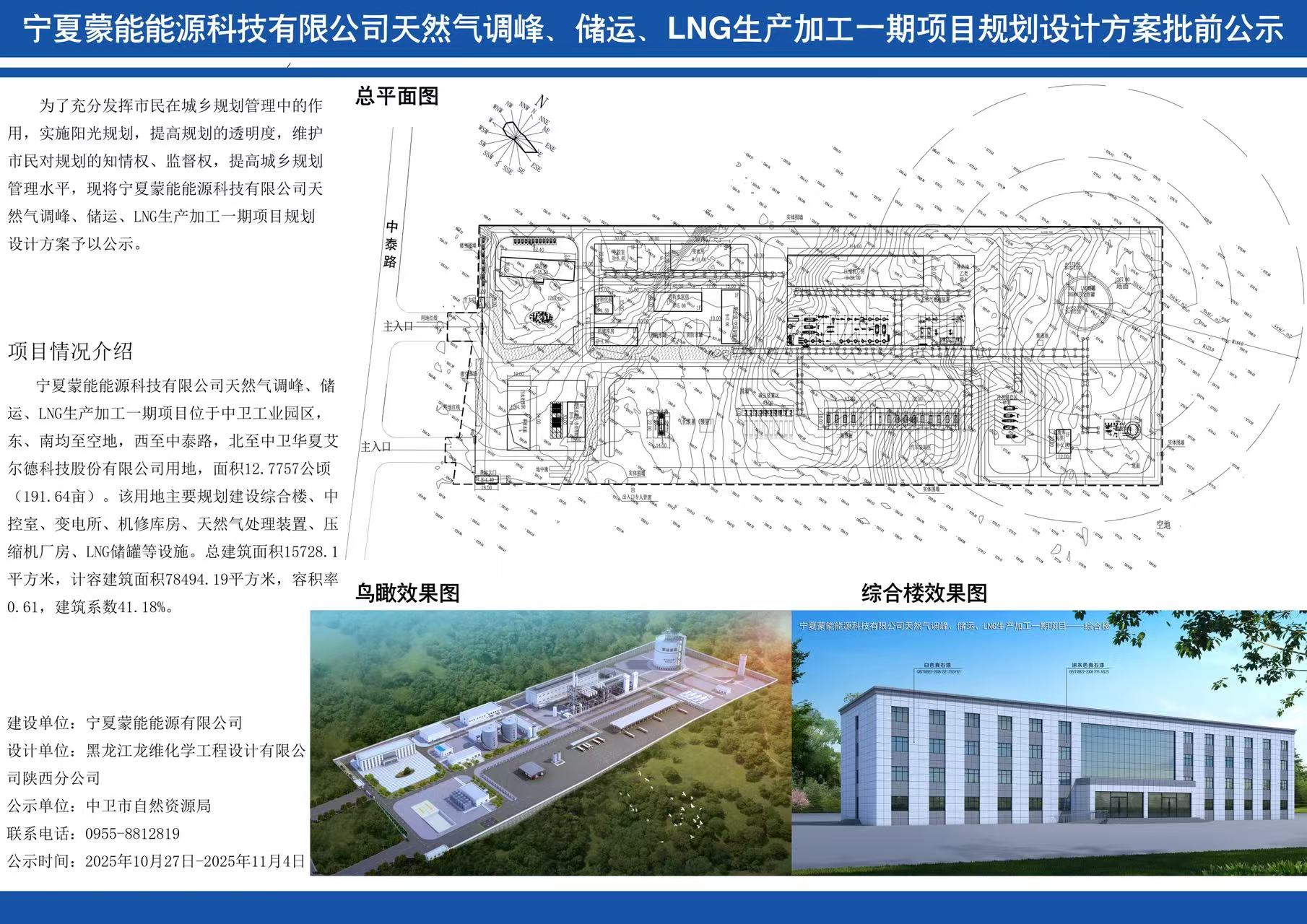 宁夏蒙能能源科技有限公司天然气调峰、储运、LNG生产加工一期项目规划设计方案批前公示