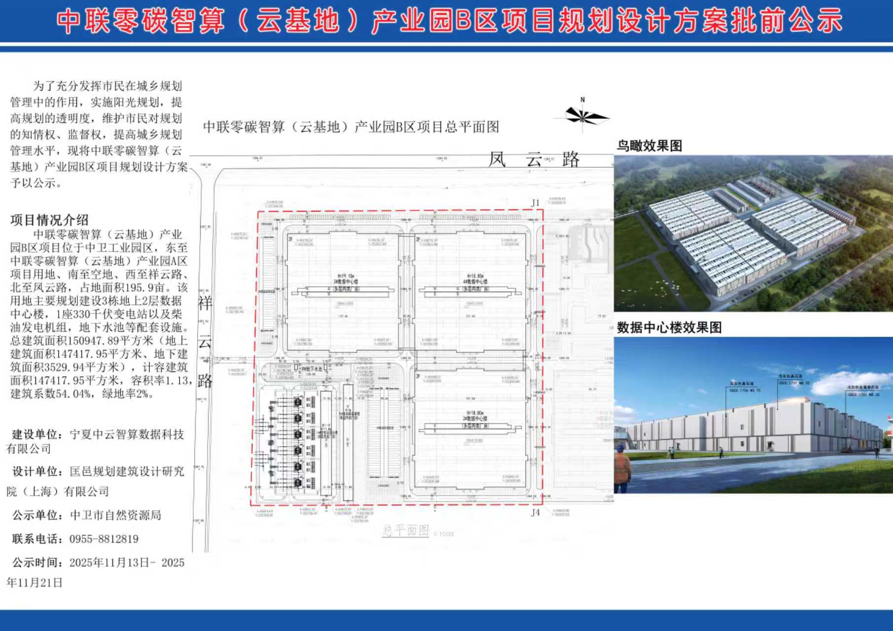 中联零碳智算(云基地)产业园B区项目规划设计方案批前公示
