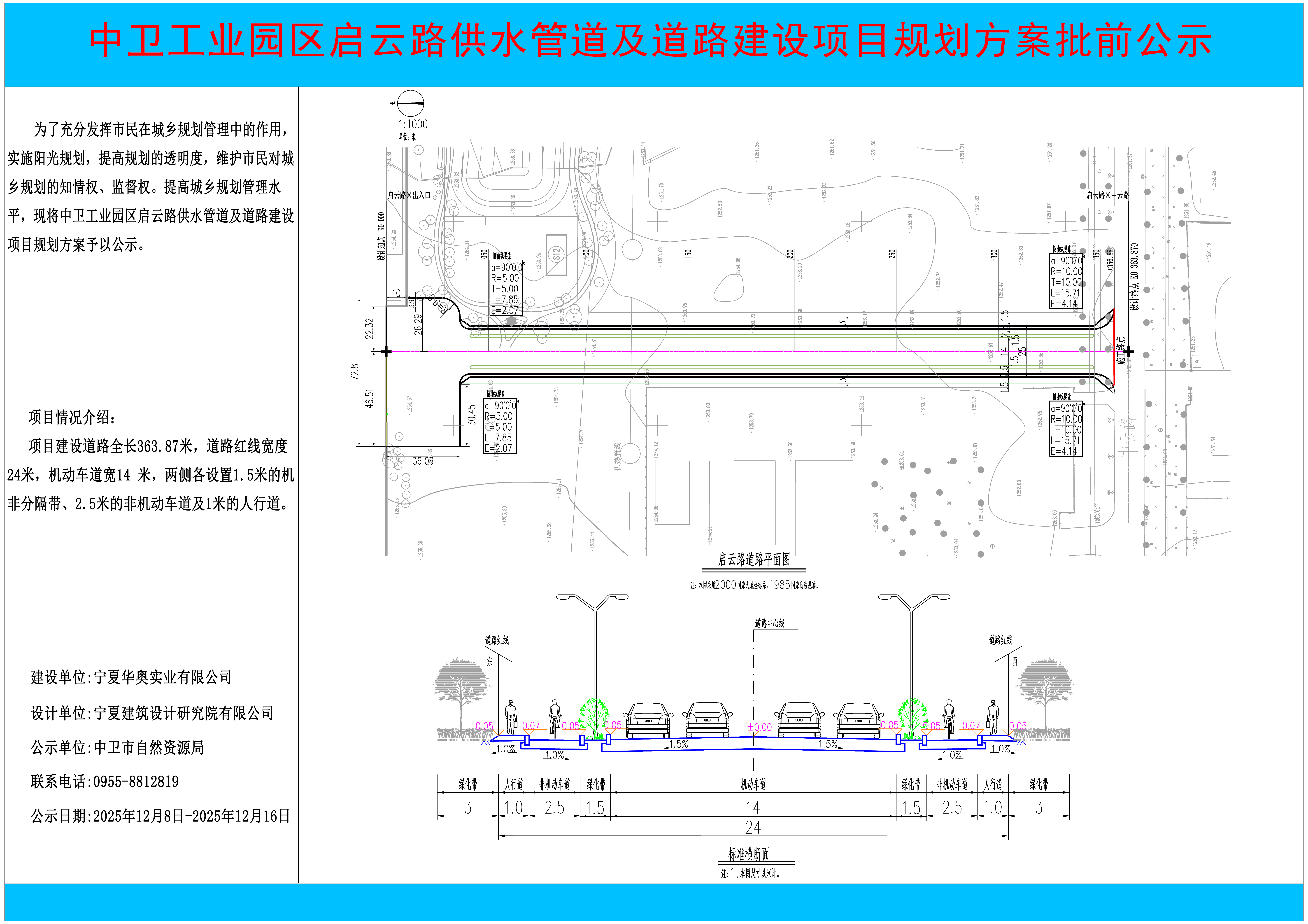 中卫工业园区启云路供水管道及道路建设项目规划方案批前公示